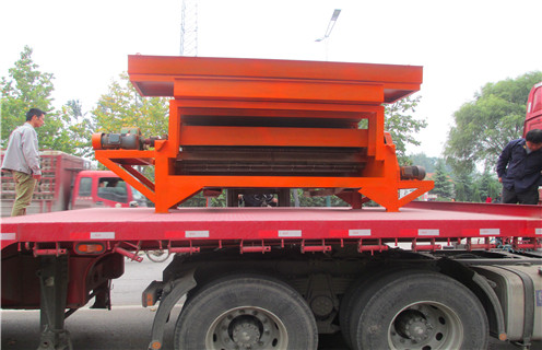 2、礦粒經輸送皮帶被送進上磁輥選別,因為褐鐵礦,褐鐵礦,氧化錳,炭酸錳礦的礦粒有磁性,馬上被強磁場吸咐在磁輥上,脈石粒(雜石、碎石土)因為沒有磁性(磁性太弱),磁輥的強磁鐵對它不發病吸附力,跟隨磁輥的更改,礦粒一向被吸在磁輥上,而脈石粒在磁輥轉到前端開發方向時被拋出去掉在隔礦板的前邊(根據修改隔礦板視角的尺寸可調節精礦的層級),礦粒再次被磁輥送到脫磁區時全自動跌入一選集礦斗搜集為精礦制成品。